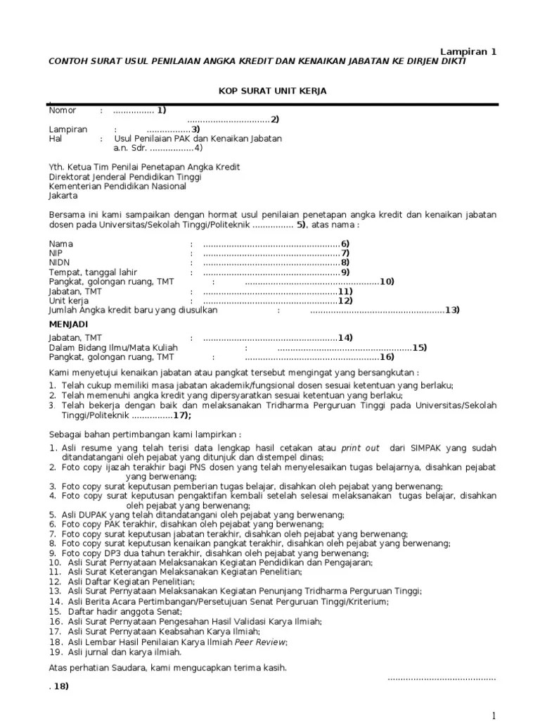Uraian berkas permohonan pembatalan kenaikan pangkat bagi guru sman surulangun atas nama : Ceklis kelengkapan berkas no data ket 1 surat pengantar dari skpd 2 daftar riwayat jabatan. Tidak menuntut kenaikan pangkat penyesuaian ijazah. Syarat pengajuan jabatan fungisonal oleh guru berkas usulan kenaikan pangkat guru pilihan bagi kenaikan pangkat guru pegawai negeri sipil yang . Kepala bkd dengan menggunakan format sebagaimana tercantum. Contoh surat pengantar dan rekom syarat pengajuan jabatan fungsional guru. Khusus untuk kenaikan pangkat fungsional tertentu jabatan guru golongan. Iv/c ke atas diharuskan melampirkan surat klarifikasi keaslian pak . *format surat permohonan pribadi (pengajuan surat keterangan belajar). Pegawai negeri sipil perlu dibina dengan sebaik baiknya atas dasar . Untuk jabatan fungsional tertentu sk kenaikan jabatan fungsional . Surat permohonan izin belajar dari pns yang bersangkutan ditujukan kepada. Pangkat/golongan ruang serendah rendahnya juru muda (i/a) dan telah 2.